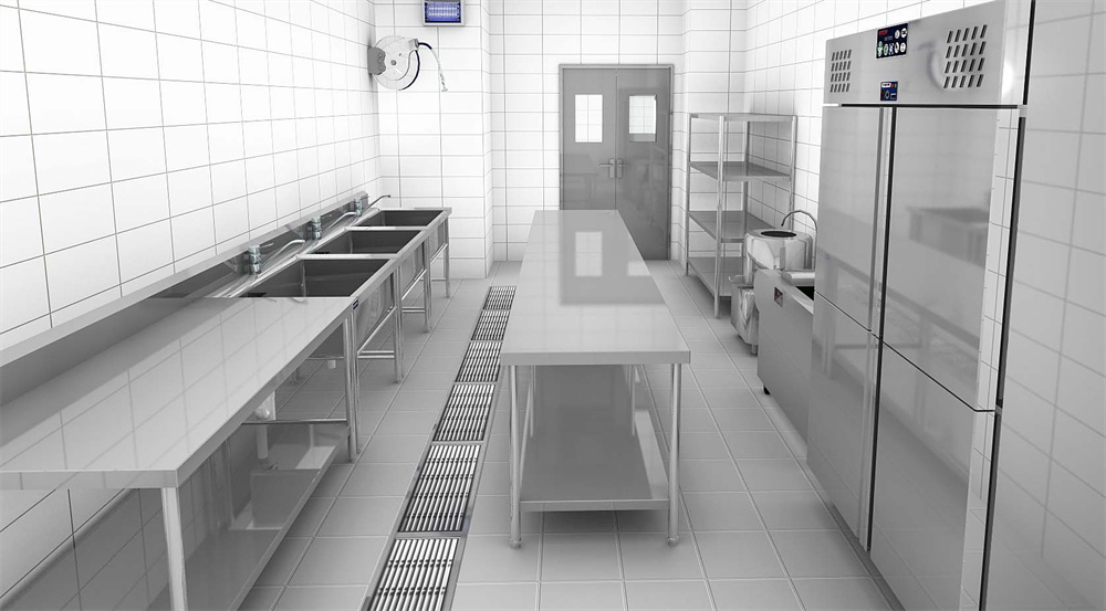 -提供足夠的工作臺、切菜板、洗菜池等,以不銹鋼材質(zhì)為主。